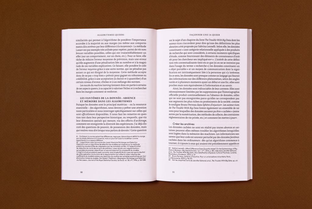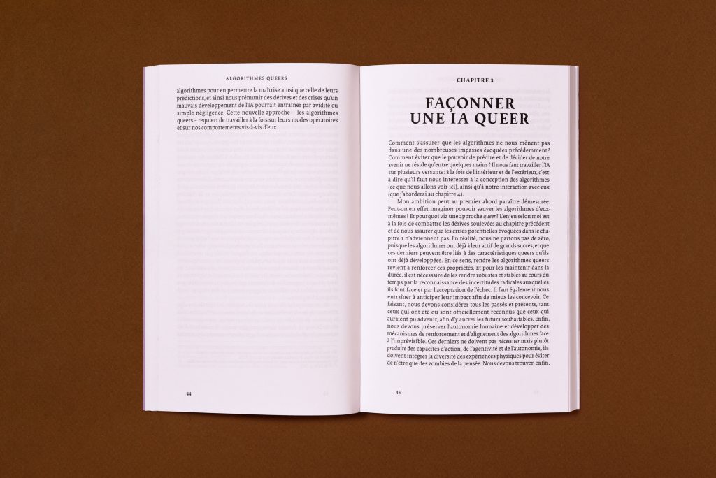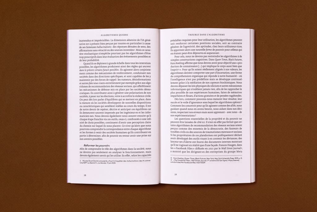 Afin de démontrer les capacités présentes et futures de ces « algorithmes queers », cet économiste spécialiste de l’IA convoque une multiplicité de sources allant des sciences sociales à la littérature, en passant par les études queers et l’art contemporain. Dans ce texte radicalement prospectif, l’auteur explore comment les outils d’analyse de données peuvent esquisser des chemins alternatifs pour les technologies à venir en s’ouvrant à la diversité des expériences cognitives et physiques propres aux êtres humains.