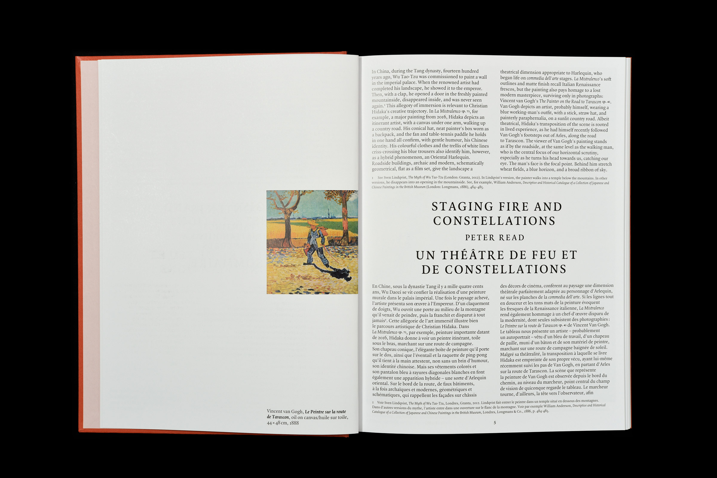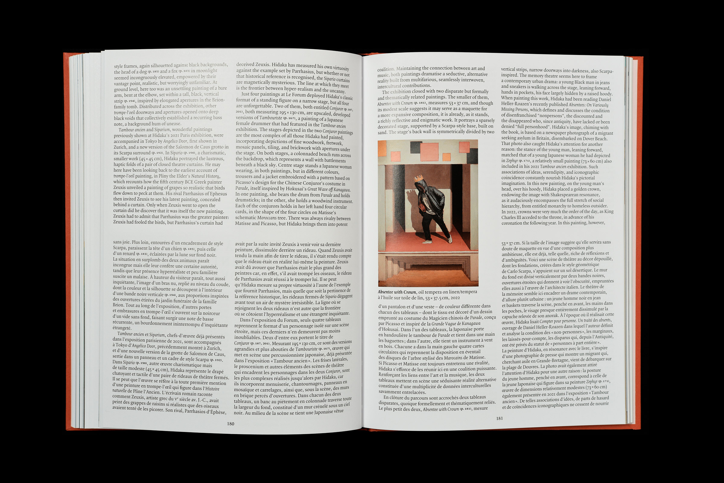 Parcourue de réminiscences et d’énigmes, l’oeuvre de Christian Hidaka traverse l’histoire de la peinture pour en proposer une lecture à la fois cérébrale et sensible. Mêlant différentes références picturales, l’artiste anglais parvient à faire un pont entre plusieurs esthétiques que tout semble pourtant opposer. Ses tableaux évoquent la peinture de la Renaissance marquée par la géométrie euclidienne, tout comme l’esthétique picturale sino-japonaise traditionnelle, privilégiant une représentation aplatie des paysages et de la perspective. Cohabitent ainsi des arlequins modernes ancrés dans des fictions architecturales, des clowns blancs ou danseurs de ballet dans des paysages pixellisés rappelant l’esthétique du jeu vidéo. Ce premier ouvrage monographique consacré au travail de Christian Hidaka revient sur l’ensemble de son parcours (2002-2024) et donne à voir une large sélection de son travail. Il est accompagné d’un texte de l’historien de l’art Peter Read, qui présente les différentes étapes ayant jalonné la carrière de l’artiste et donne des clés de compréhension permettant à tout un chacun d’entrer dans cette oeuvre symbolique.