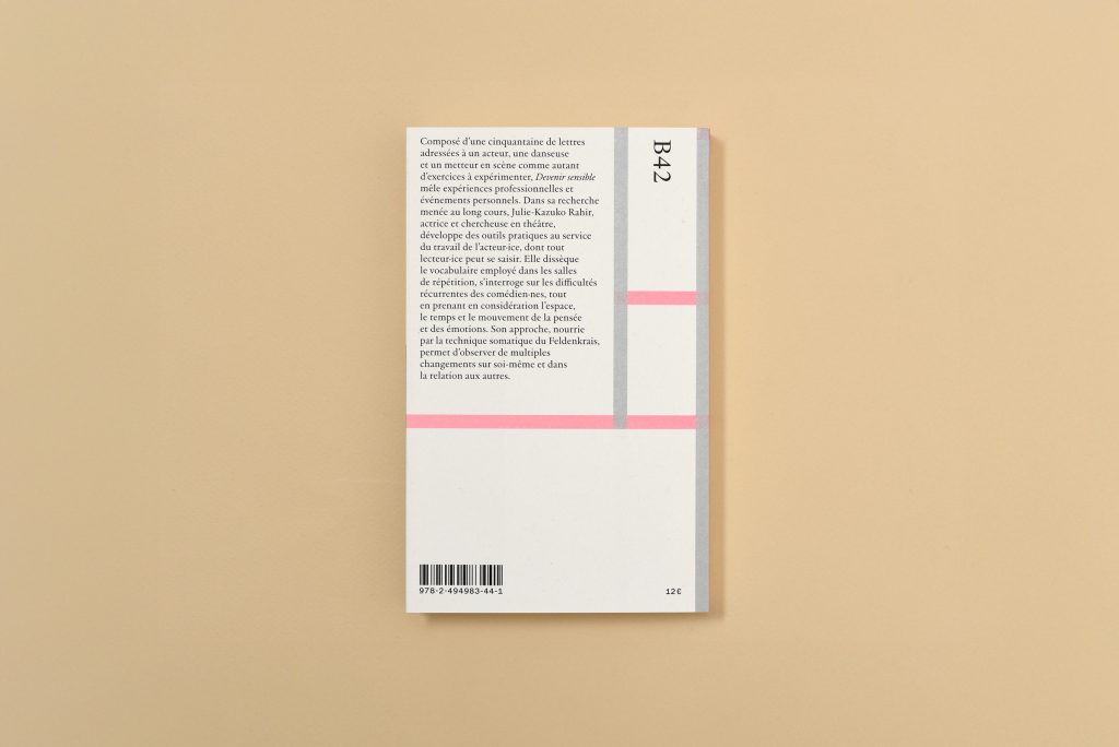 Composé d’une cinquantaine de lettres adressées à un acteur, une danseuse et un metteur en scène comme autant d’exercices à expérimenter, Devenir sensible mêle expériences professionnelles et événements personnels. Dans sa recherche menée au long cours, Julie-Kazuko Rahir, actrice et chercheuse en théâtre, développe des outils pratiques au service du travail de l’acteur·ice, dont tout lecteur·ice peut se saisir. Elle dissèque le vocabulaire employé dans les salles de répétition, s’interroge sur les difficultés récurrentes des comédien·nes, tout en prenant en considération l’espace, le temps et le mouvement de la pensée et des émotions. Son approche, nourrie par la technique somatique du Feldenkrais, permet d’observer de multiples changements sur soi-même et dans la relation aux autres.